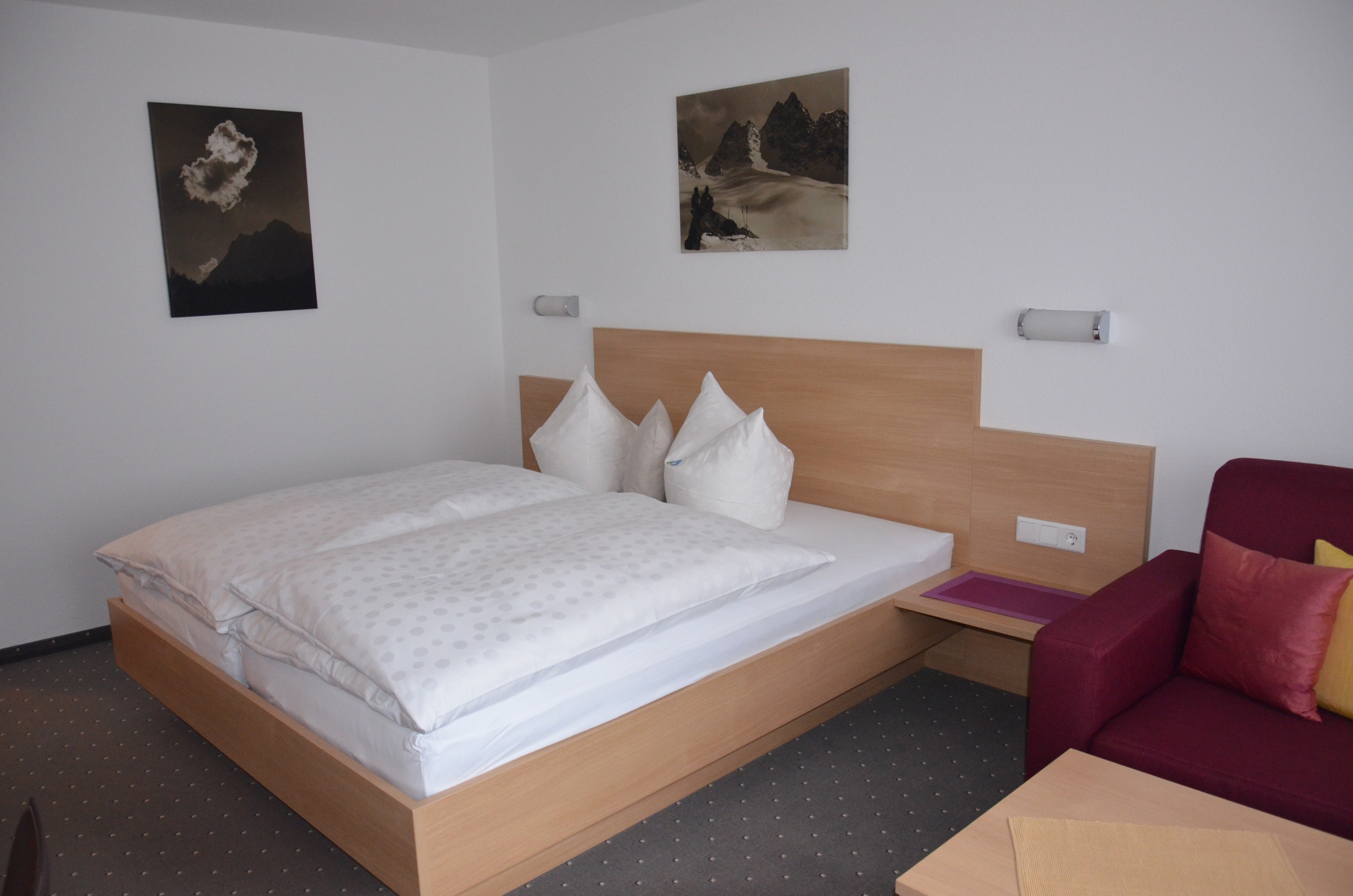 Genügend Parkplätze sind direkt vor dem Hotel Garni vorhanden. Auf Wunsch kann auch ein Garagenplatz angemietet werden. Die Bushaltestelle befindet sich 3 Gehminuten entfernt.